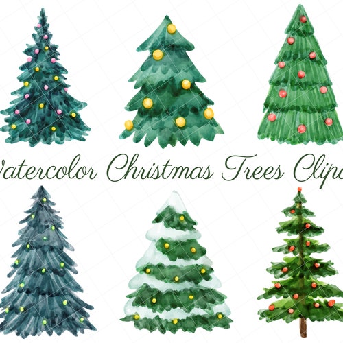 Watercolor Christmas Tree Collection Clipart Tree Clipart Etsy